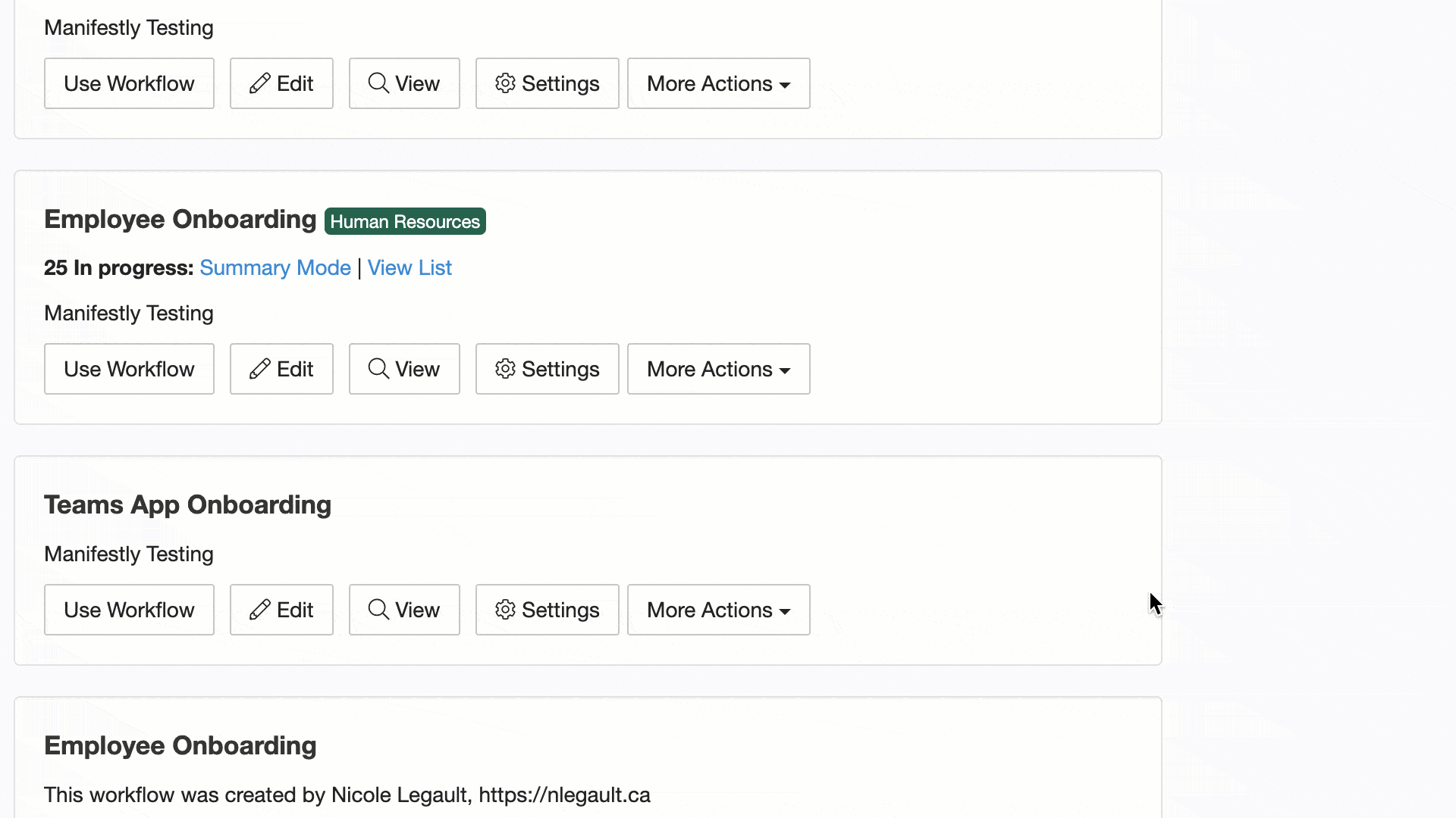 In this example, we’re getting the URL for the Marketing Employee of the Employee Onboarding Workflow.