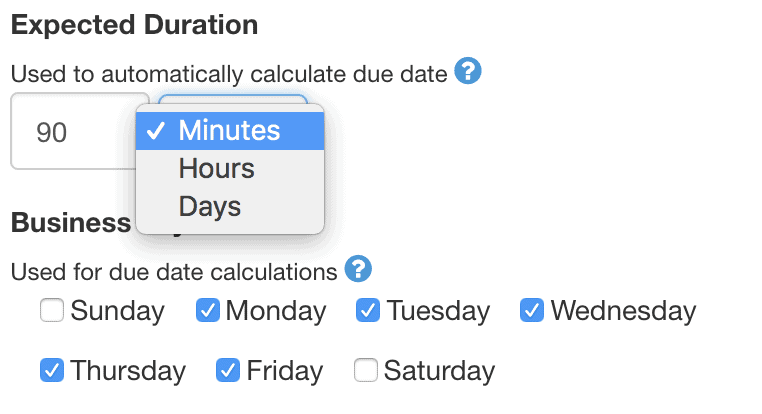 You also have the ability to configure business days. These days are used along with the expected duration to calculate the checklist due date.
