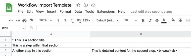 You can import from a spreadsheet or a word document. Just head to the Workflows tab in our app.